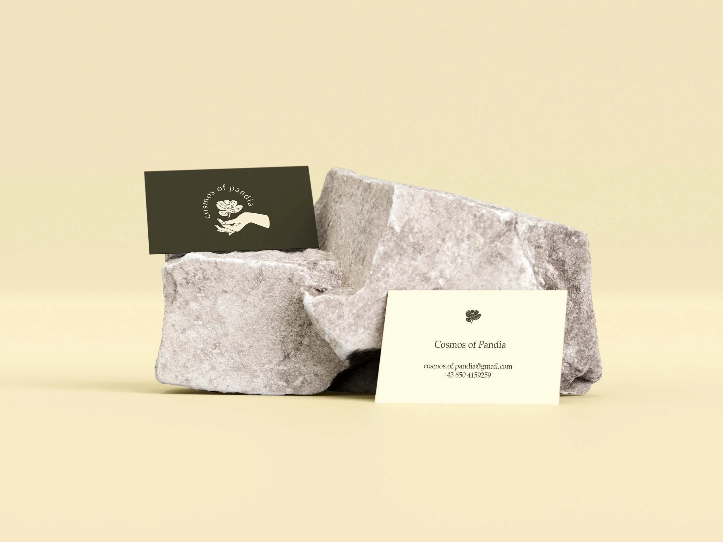 The colors are very earthy and natural. It is not “in your face glass art”, because the company may want to expand on other hand made crafts. Pandia is the greek goddess of light and the personification of the moon. In the middle of the logo you find the flower “black cosmos”.